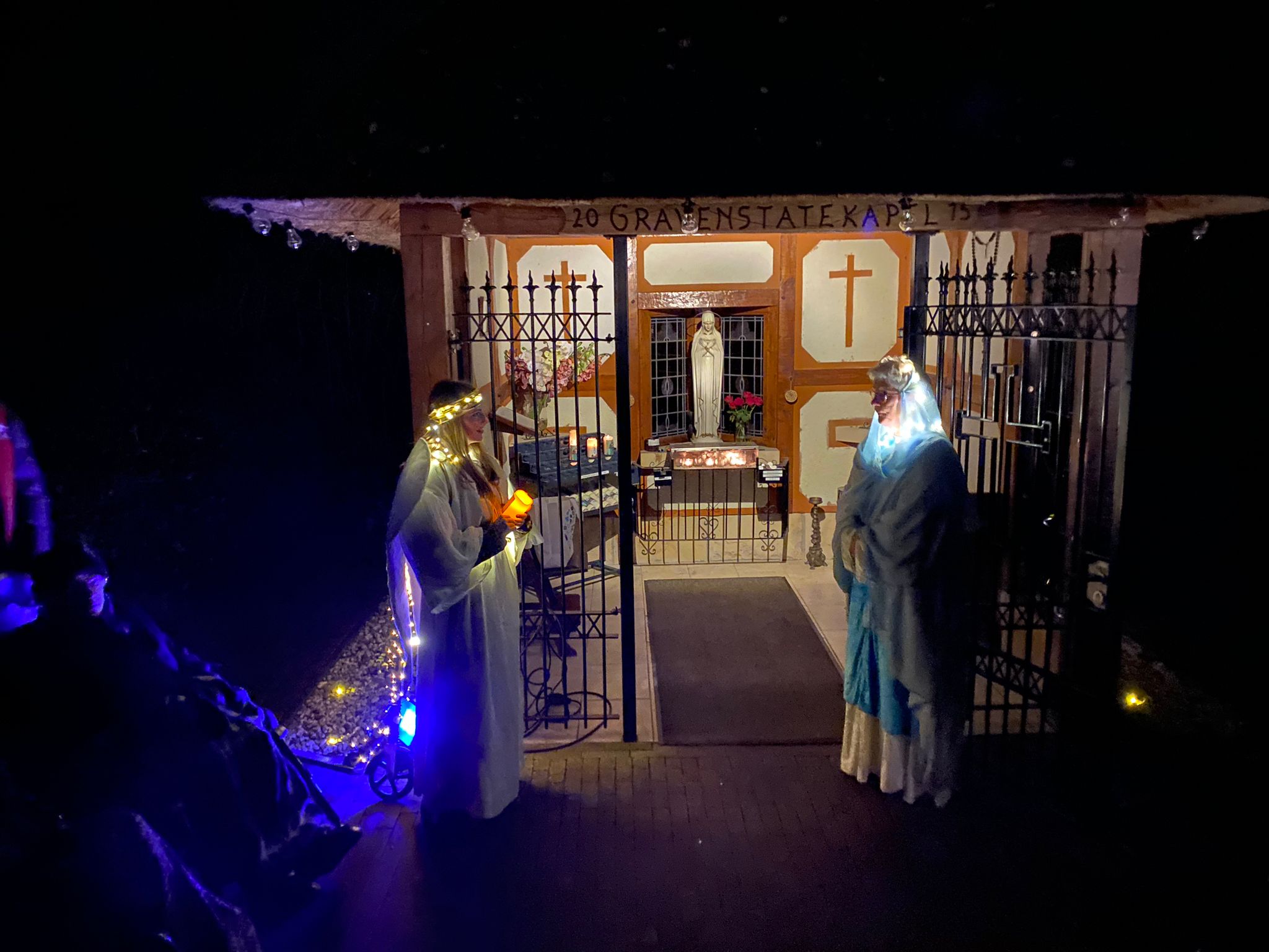 Samen liepen we door het kerstverhaal, gedragen door lichtjes, muziek en mooie ontmoetingen. Onderweg met de ezel en het slot in de stal met echt kindeke jezus, absoluut betoverend!
