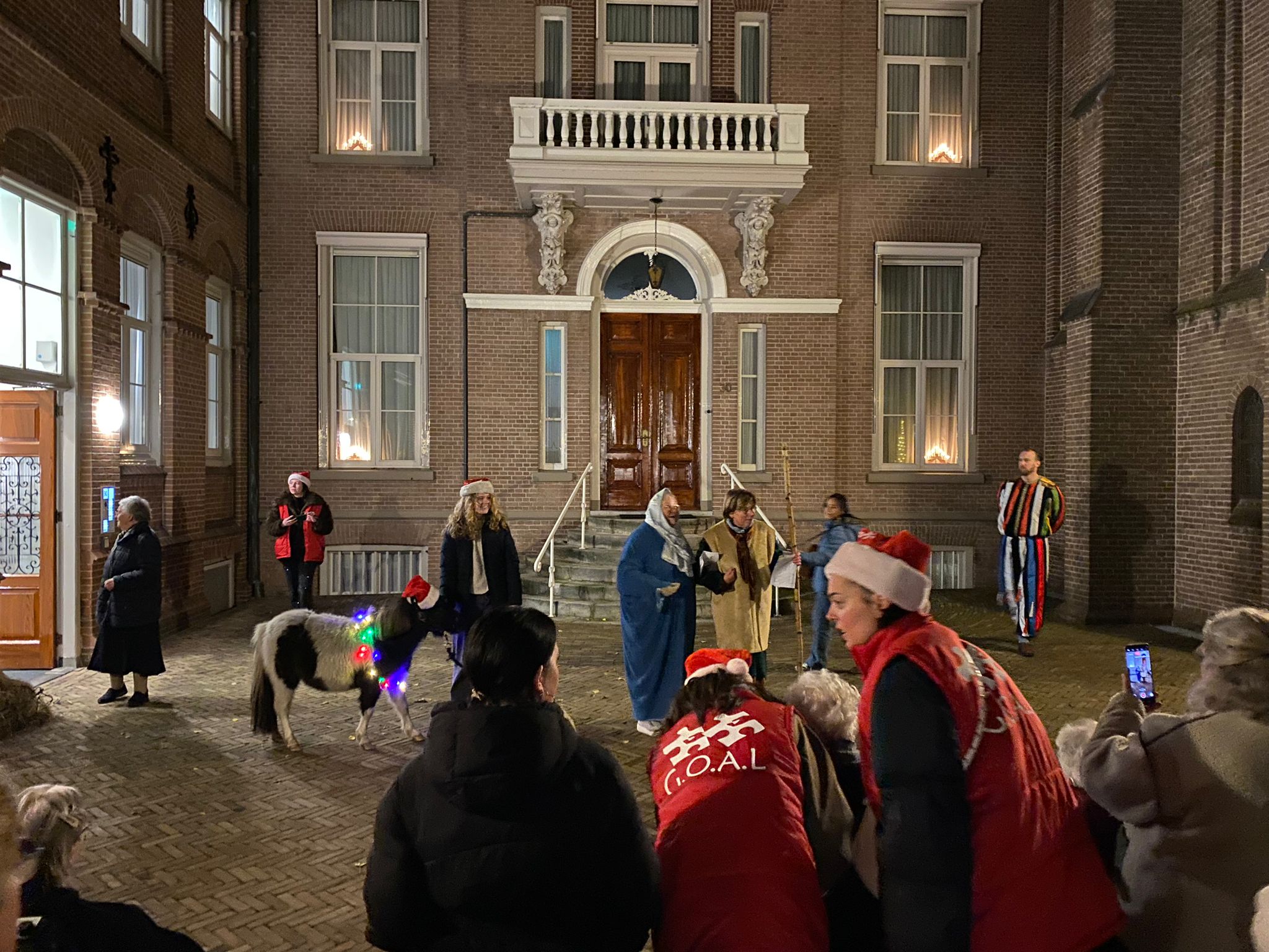 Het is er weer de hoogste tijd voor; Adventstochten! Vanavond was de aftrap op ‘t Bouwhuis van De Twentse Zorg Centra. Bewoners en begeleiding bereiden zich voor op Kerstmis en doen dat met een buitengewoon sfeervolle wandeling waarbij het Kerstverhaal wordt vertolkt middels mooie taferelen op het terrein. De bestuurders Hans Poortier, Frank van der Linden, regiomanager Rimke Wilmink en vele andere werknemers van De Twentse Zorgcentra speelden enthousiast en vol overtuiging hun rol als Maria, Jozef, herder, koning of wat dan ook! FANTASTISCH!! Nog nooit was de deelname van bewoners en begeleiding zo groot. Dit door de enthousiaste inzet van het team Recreatie en de Geestelijke Verzorging! GROTE KLASSE!! Nog nooit waren er ook zoveel extra handen nodig vanuit Stichting GOAL. Gelukkig was er vanavond een geweldige “debutant in de spits”. Ter Doest uit Hengevelde, bekend om mensen veilig op de plek te brengen, liepen met maar liefst 11 mensen mee en brachten de bewoners via “Bethlehem” weer veilig terug in hun woning. Sommige bewoners smachten naar hun bed, vermoeid door “de reis”. Snel naar dromenland en dan is het lekker snel Kerstmis! GOAL!!